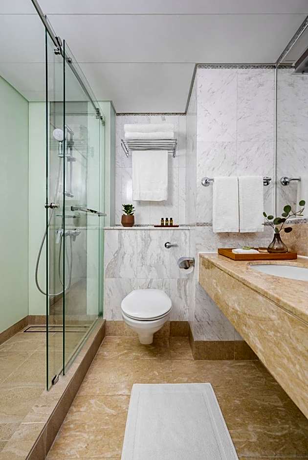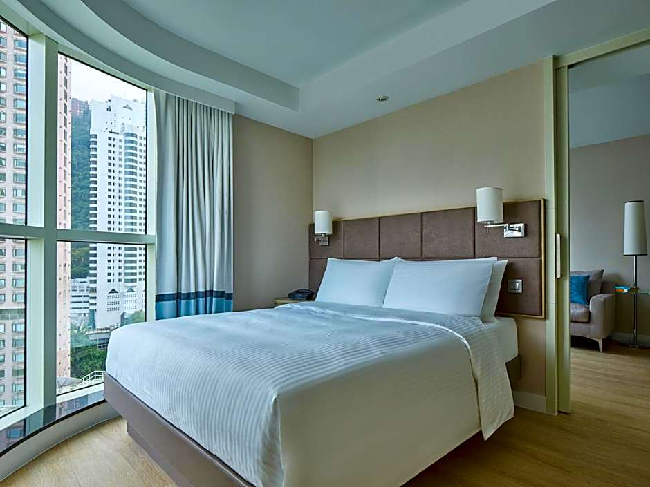 This air-conditioned suite is consisted of of 1 living room, 1 separate bedroom and 1 bathroom with a bath. Guests can make meals in the kitchen that is fitted with a stovetop, a refrigerator, kitchenware and a microwave. The suite offers a flat-screen TV with satellite channels, a seating area, a dining area, a wardrobe as well as city views. The unit offers 1 bed.